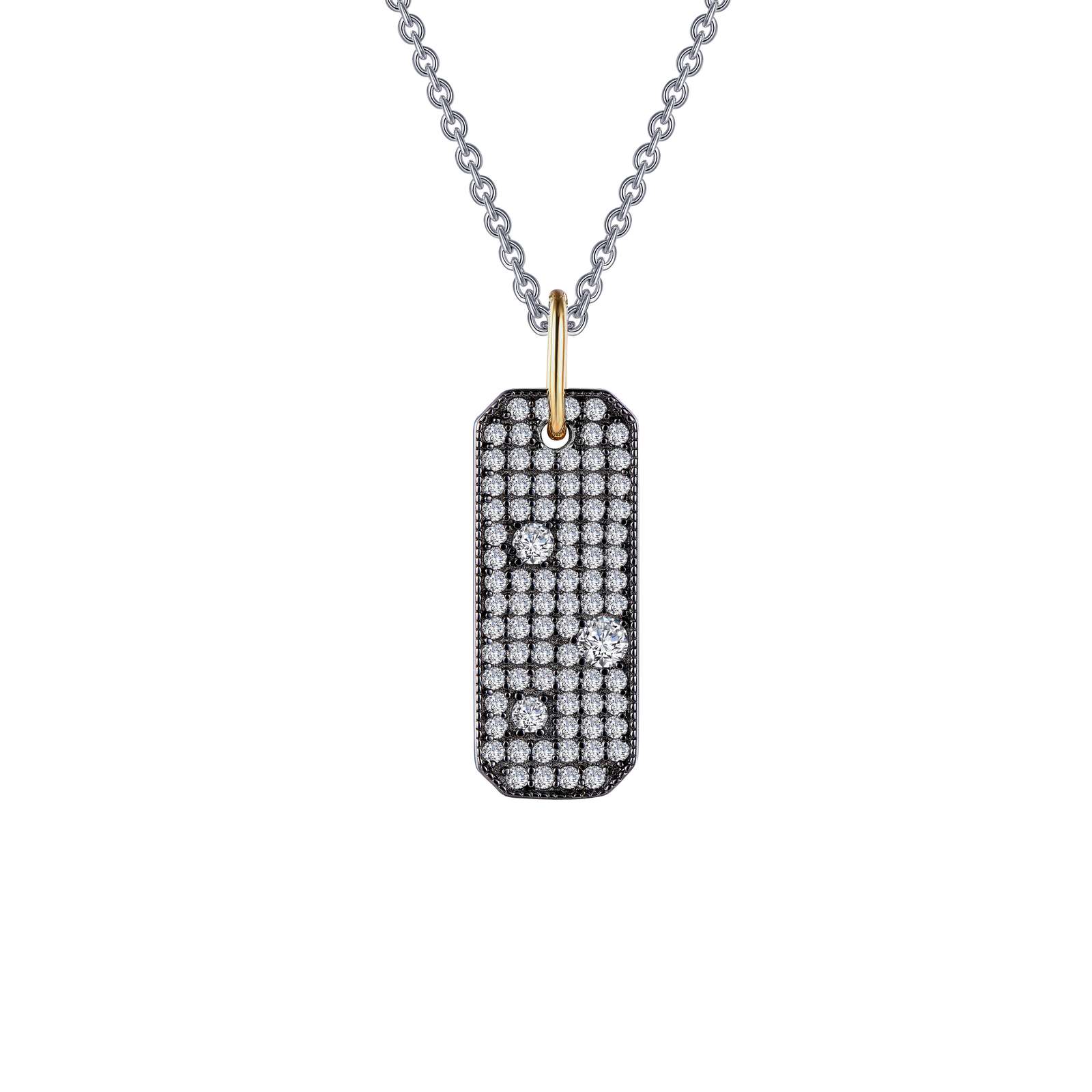 Fun and playful. This mixed-color tag pendant is set with Lafonn's signature Lassaire simulated diamonds in sterling silver bonded with platinum, gold-plated sterling silver and black rhodium. The pendant comes on an adjustable 20" chain.