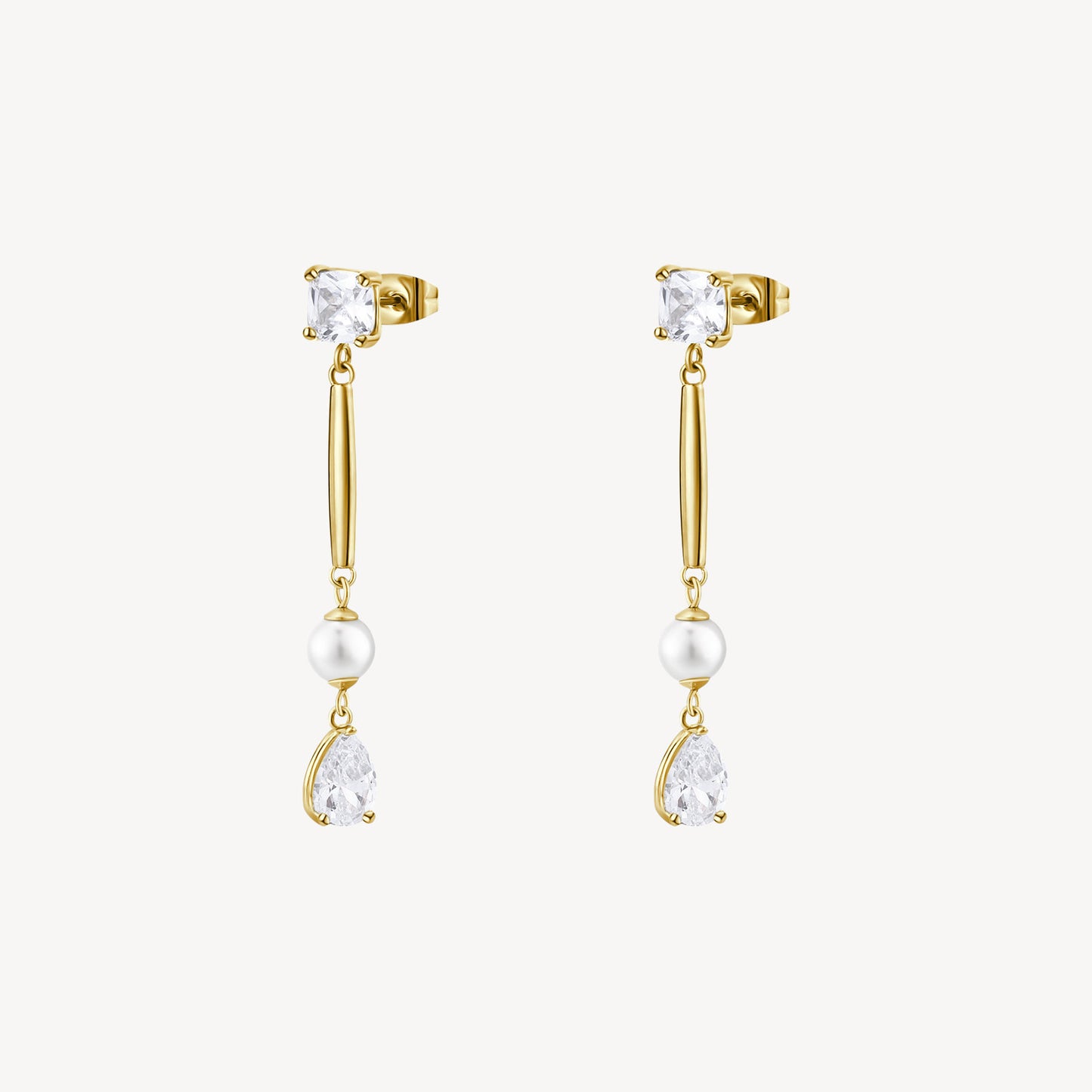 Cubic Zirconia and Shell-Pearl Drop Earrings in Gold Plated Stainless Steel