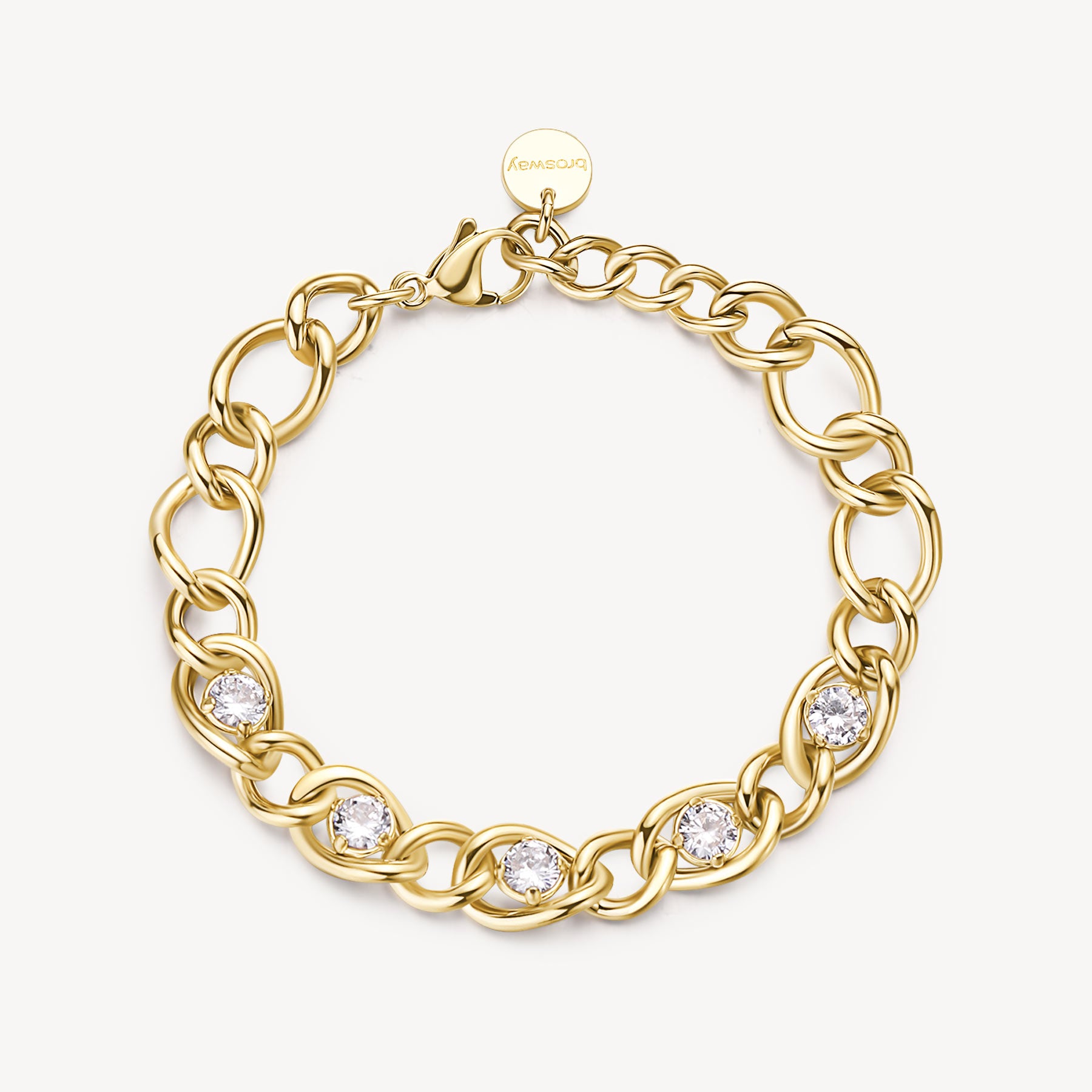 Cubic Zirconia Chain Bracelet in Gold Plated Stainless Steel