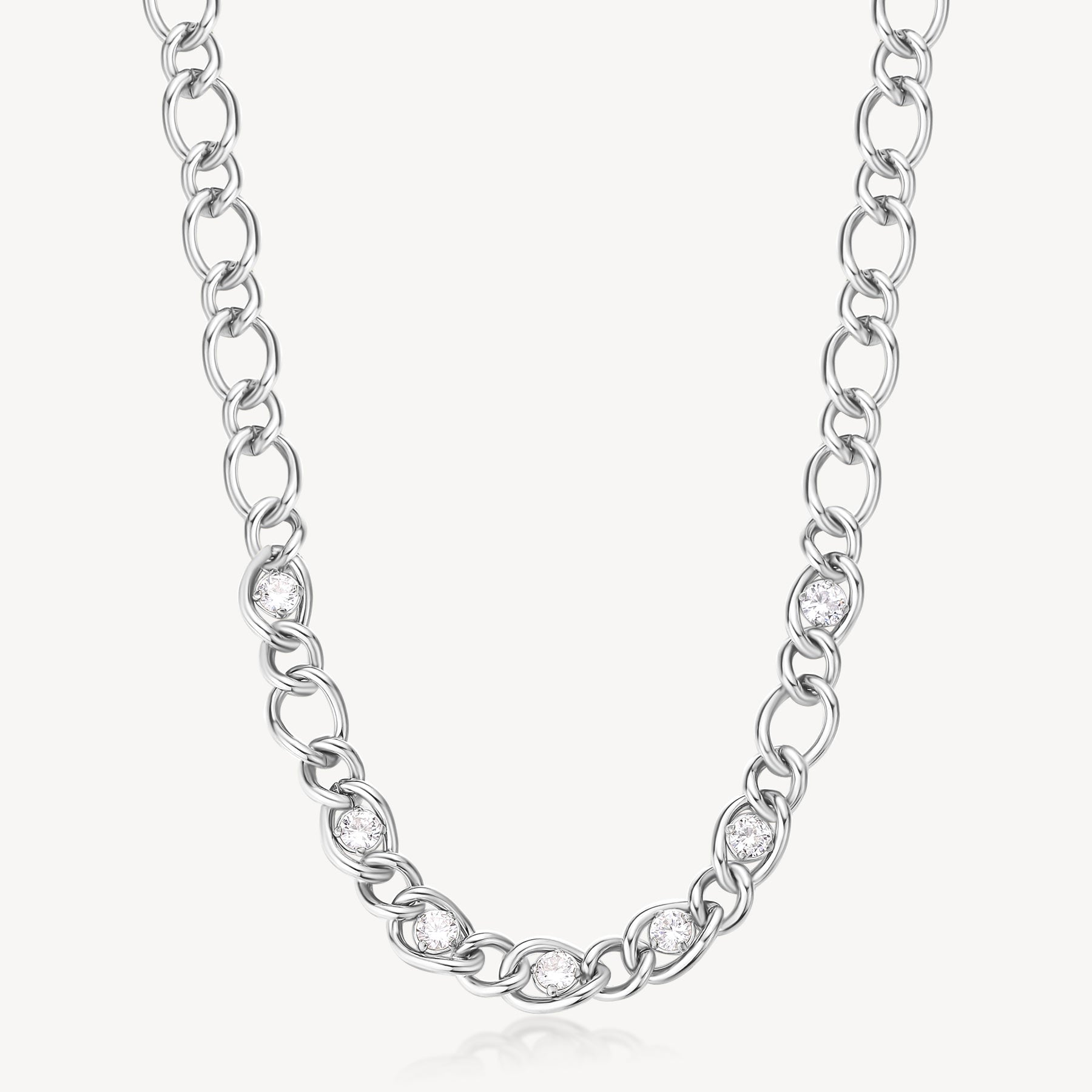 Cubic Zirconia Chain Necklace in Stainless Steel