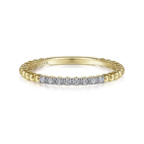 Diamond Beaded Bar Stackable Band in 14K Yellow Gold