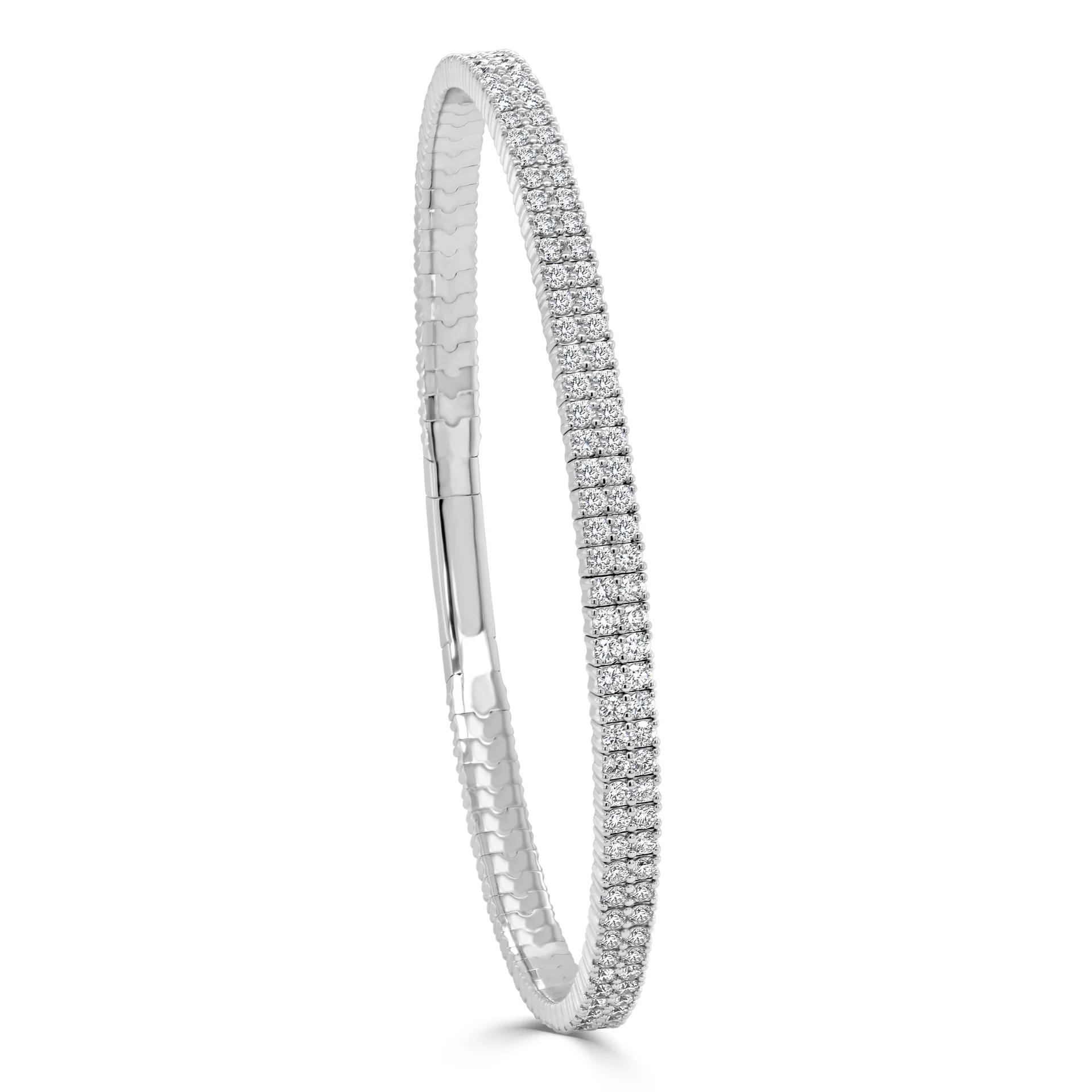 Diamond Double Row Flexible Bangle in 14K White Gold