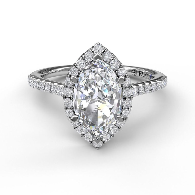 Diamond Marquise Halo Engagement Ring in 14K White Gold