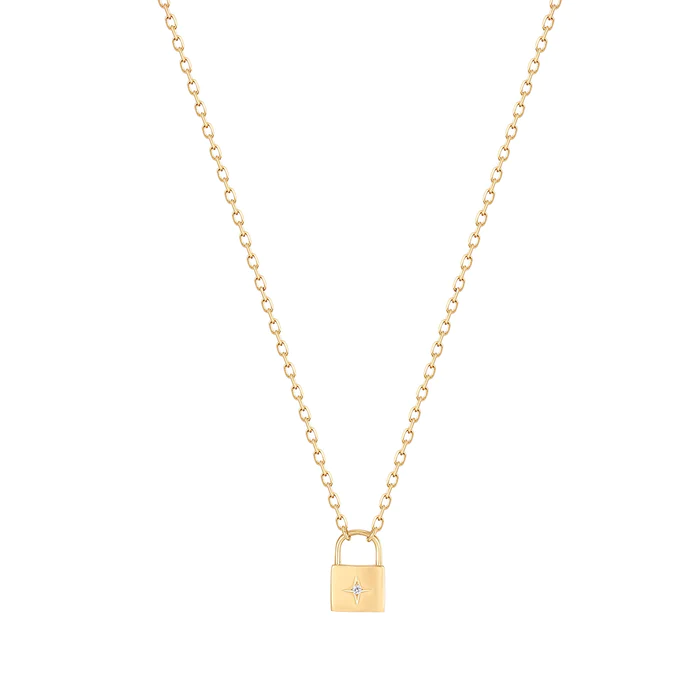 Diamond Padlock Necklace in 14K Yellow Gold