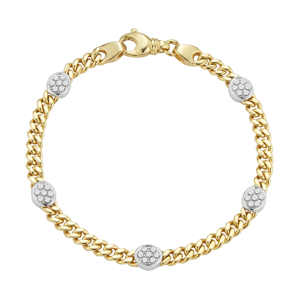 Diamond Pave Bezel Station Curb Bracelet in 14K Two Tone Gold