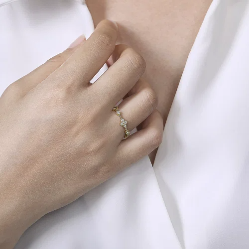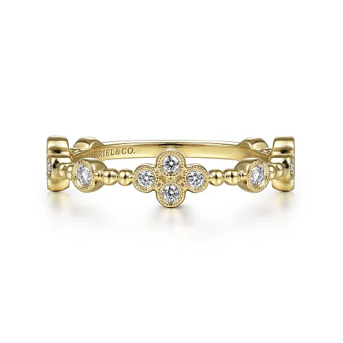 Diamond Quatrefoil Stackable Band in 14K Yellow Gold