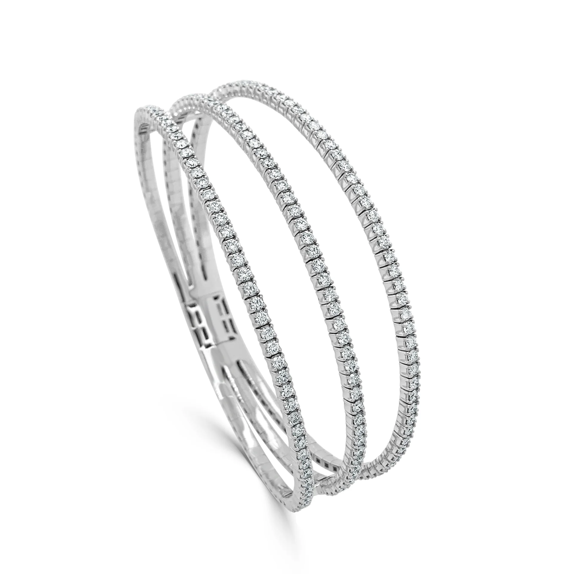 Diamond Triple-Row Flexible Bangle in 14K White Gold