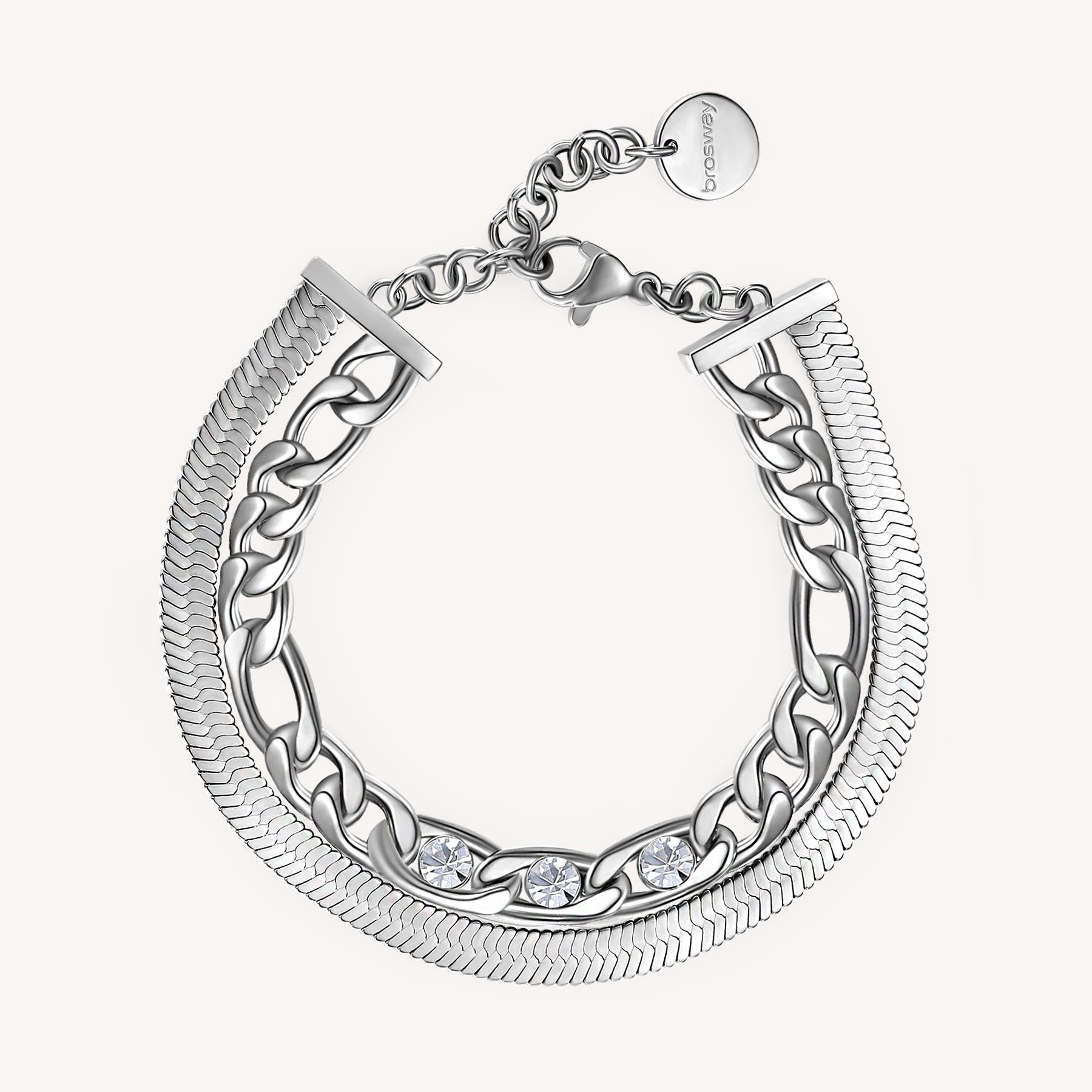 Double-Strand Link Crystal Link and Herringbone Bracelet in Stainless Steel