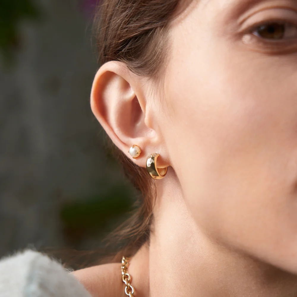 Elevate your look in an instant with this pair of chic pearl barbell earrings. Crafted in 14kt gold-plated sterling silver set with a beautiful real pearl, these are the earrings to take any look to the next level this season. Made with a barbell-style finish, wear yours in your lobes as a matching pair or pop into a cartilage piercing anywhere on the ear. And if you fancy switching things up, simply turn them around to wear the gold dome at the front and the pearl at the back for a two-in-one look.