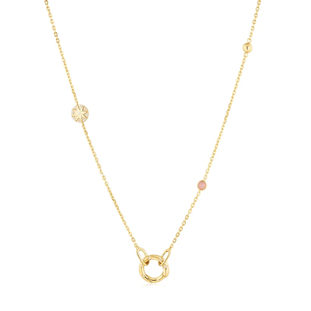 Opt for an effortlessly cool charm necklace this season to kick off your charm jewellery collection. Crafted in 14kt gold-plated sterling silver, discover a delicate gold chain, finished with gold and rose quartz orb detailing, alongside a stunning cubic zirconia encrusted star disc. Pop open the sparkling connector to add your chosen charms to create a pendant, or wear simply as the perfect layering chain.