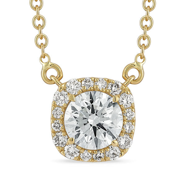 Grown Diamond Halo Necklace in 14K Yellow Gold