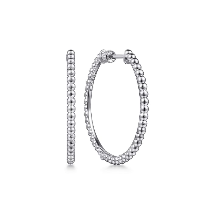 Large Beaded Classic Hoop Earrings in Sterling Silver