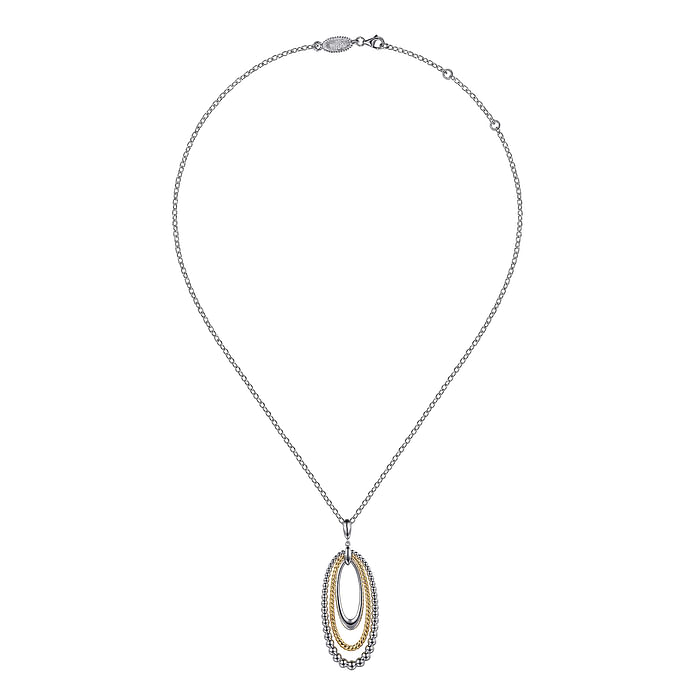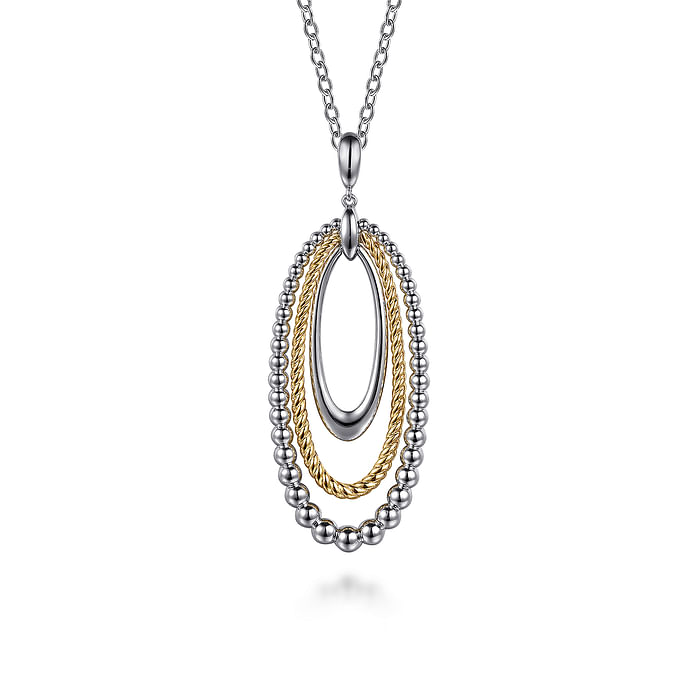 Multi-Row Oval Pendant Necklace in 14K Yellow Gold & Sterling Silver