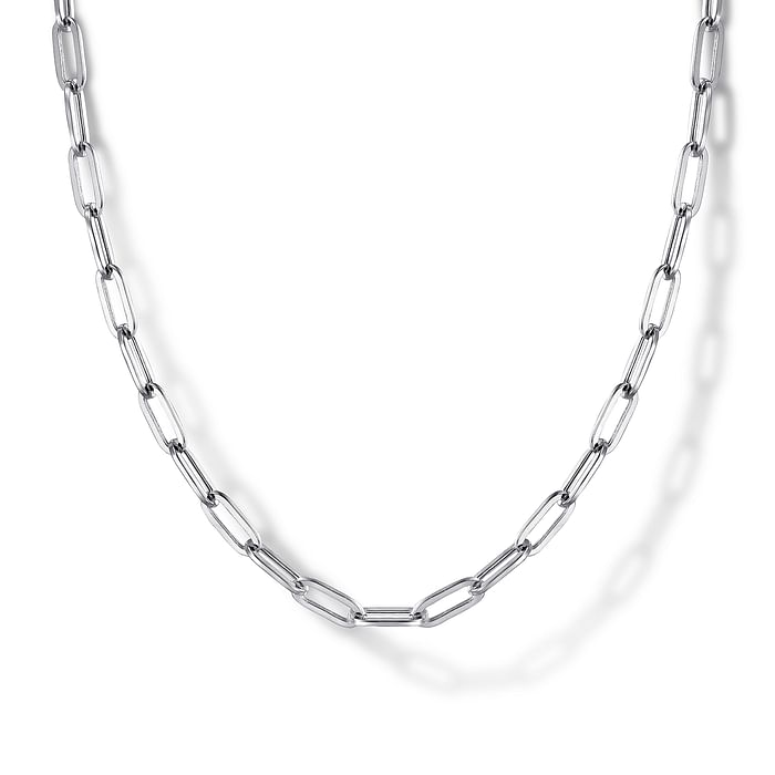 This necklace is fashioned in a 2.3mm wide paperclip link design. The necklace is completed to a 24 inch length and held with a lobster clasp closure in sterling silver.