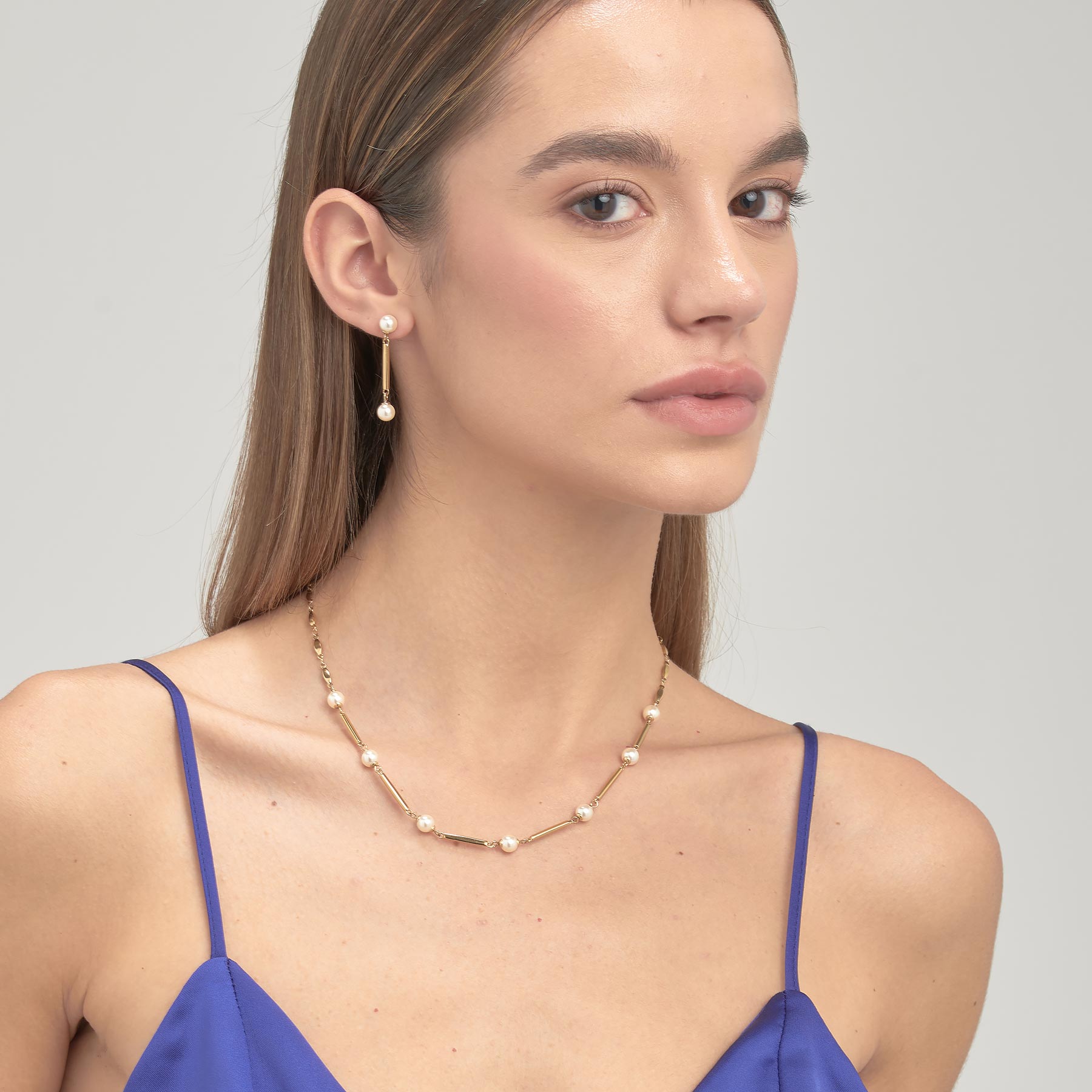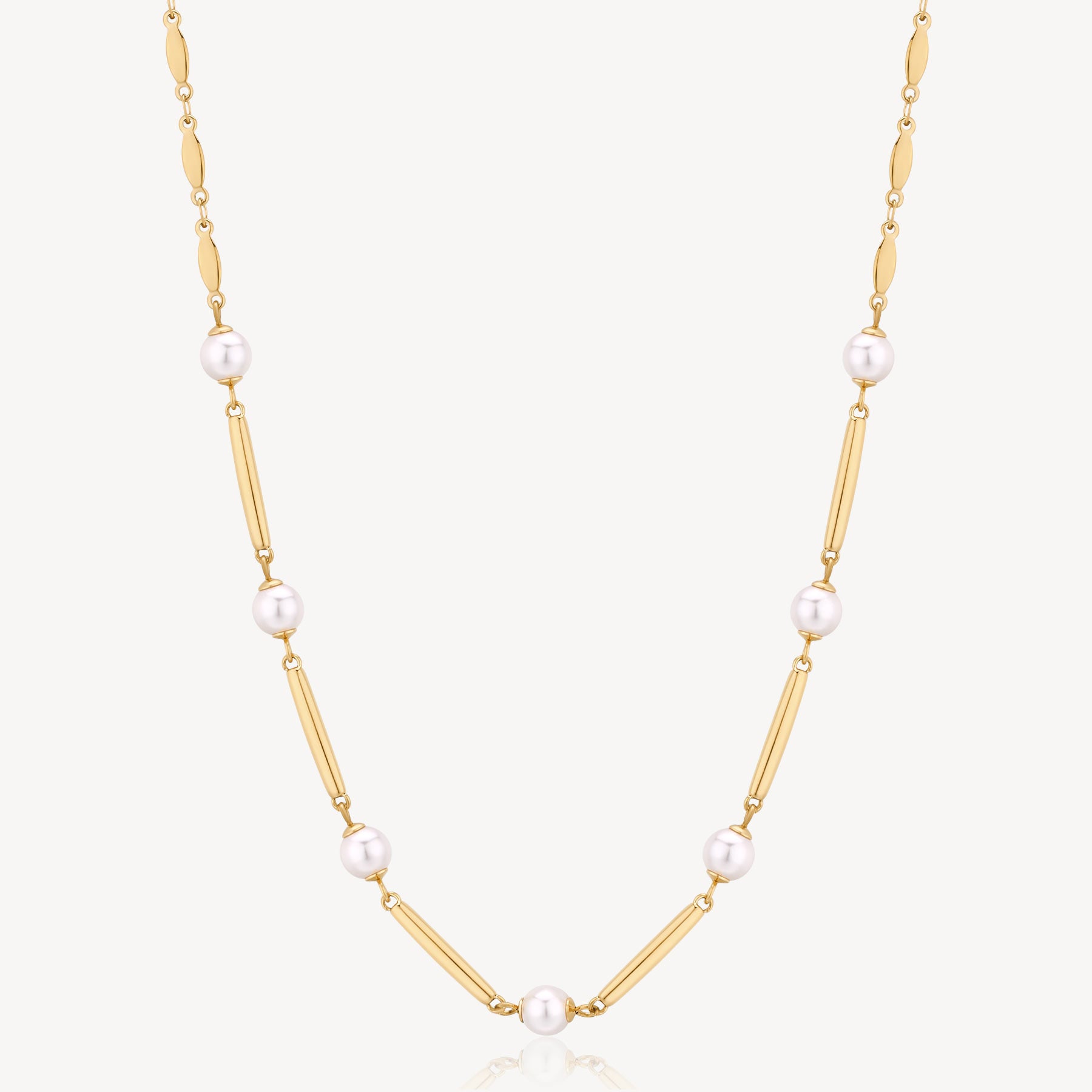 Pearl and Bar Link Necklace in Gold Plated Stainless Steel