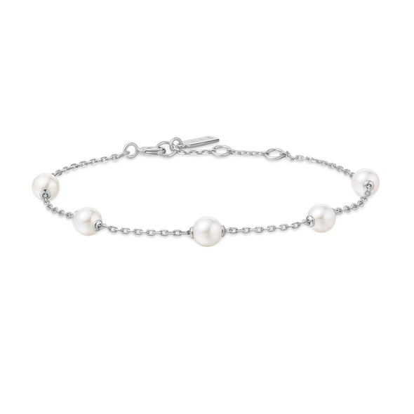 Miss Dainty is designed for the woman who loves elegance with a touch of whimsy. The exquisite and romantic design, combined with fine craftsmanship, ensures you radiate charm. This pearl station bracelet showcases delicate details, embodying grace and subtle sophistication. It is perfect for both professional occasions and everyday wear, and ideal for layering.