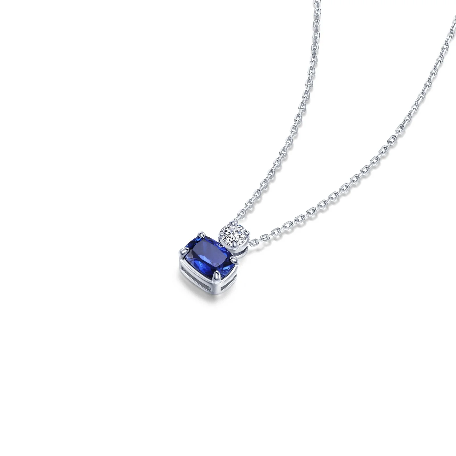 Regal Cushion Grown Sapphire Necklace in Sterling Silver