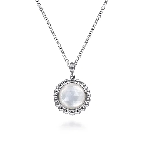 Rock Crystal and White MOP Pendant Necklace in Sterling Silver