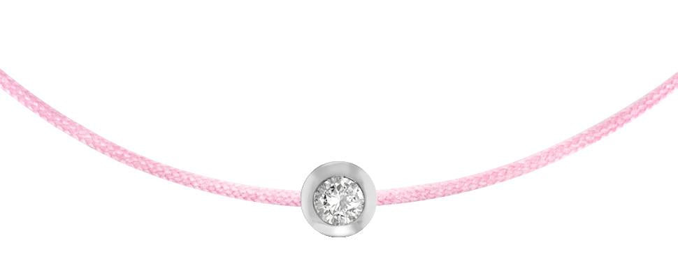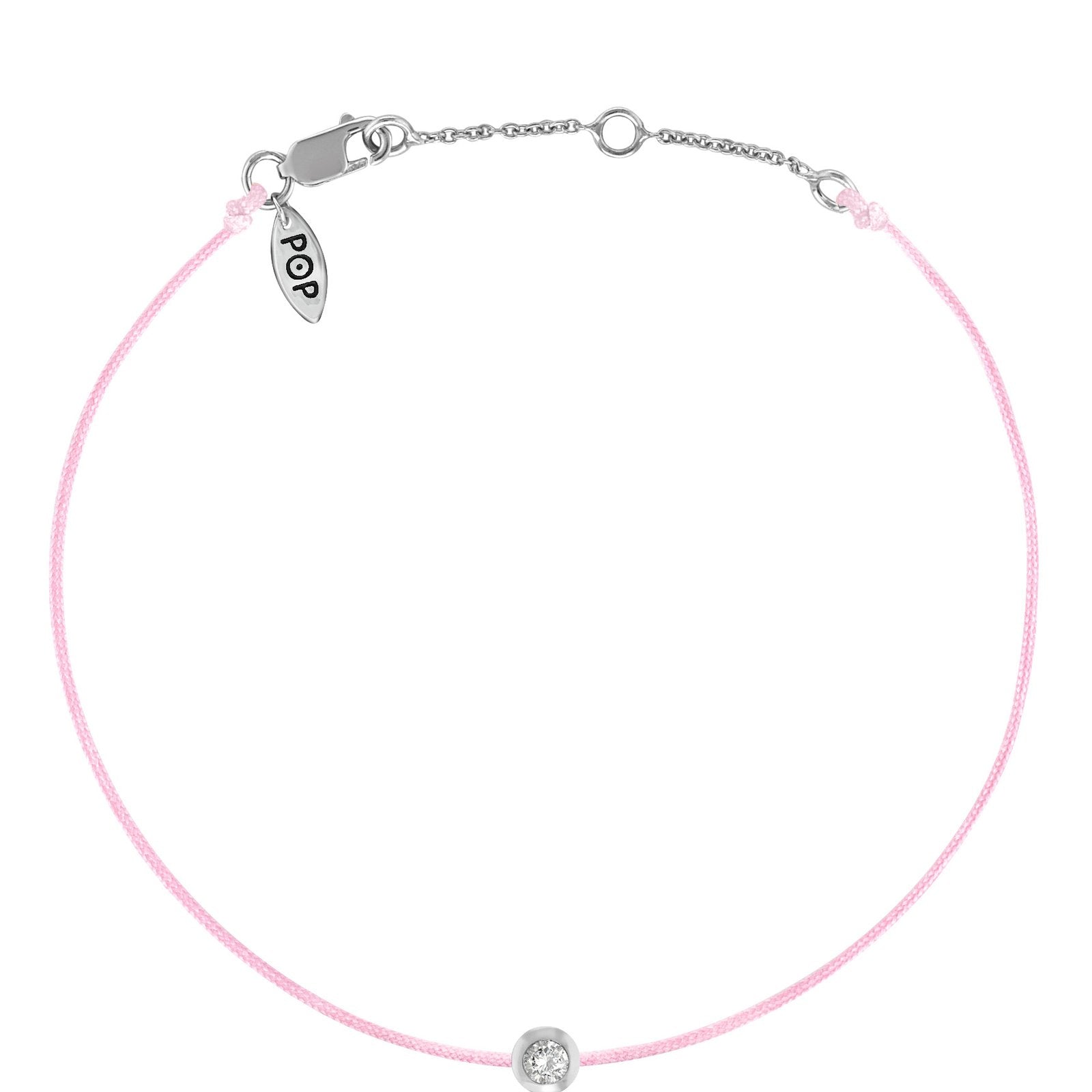 A unique cord bracelet accented with a 0.10 round brilliant cut diamond. The diamond is set in a sterling silver bezel, stationary on a 1mm colored cord. Each POP cord is guaranteed not to break, stretch or fade; built for an active lifestyle.