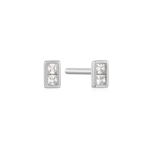 Craving some glam in your collection this season? Us, too. Try adding an edge to your ear party with these luxe cubic zirconia silver stud earrings. Mini in size but major when it comes to hitting the trends. Finished in a modern angular shape with a duo of square stones in each stud, style them with chunky huggies for the perfect seasonal ear stack. Our Silver Glam Mini Stud Earrings are also available in gold.