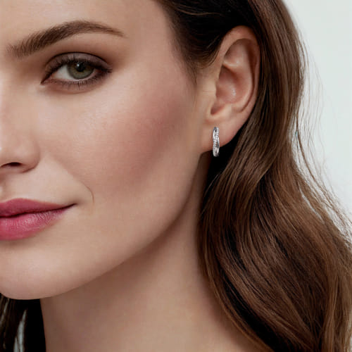 White Sapphire Twisted Hoop Earrings in Sterling Silver